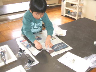 | 2006年度・4月 入学式 入学式 4月10日(月) ![]() かわいい31名の新入生が入学してきました。 今年の1年生はいつもより人数は少ないですが、 みんなとても元気に返事ができました。 校長先生の「早寝」「早起き」「朝ごはん」の話を守って、がんばろうね 2006年度 運動会 9月16日(土) 「全力つくせ!かがやく汗に感動キラリ☆」のテーマのもとに運動会が 開催されました。 台風の影響で天気があやぶまれましたが、少しプログラムを変更しましたが 最後まで自分の力を出し切る子どもたちの姿が 見られた運動会でした (1)色別で! 各学年で赤、白、青、黄色に分かれて、縦割りチームで運動会に参加しました。 がんばって自分の色を応援する姿が見られました。 ![]() ![]() (2)みんなで楽しく表現しよう! 低学年は、リズムダンス「きみとハグして 未来へGo!!」、 中学年は、表現運動「かがやけ☆キラキラ・POP STAR」、 高学年は、組立体操「創世〜命の躍動〜」で力を合わせた演技を見せてくれました。 ![]() (3)学年をこえて! 赤、白、青、黄色の4色に分かれてたてわり活動をしています。 運動会でも、たてわり種目として、「ポンポン玉入れ」、「スルスルフープリレー」、 「グルグル台風の目」、「綱引き」で仲良くがんばりました。 ![]() (4)地域の輪! 今年からラジオ体操が復活し、江州音頭も踊りました。 ![]() 2006年度:4年 ひょうたん池自然観察会 4年 ひょうたん池自然観察会 10月18日(水) ![]() 2年に一度学校の近くにあるひょうたん池の水を抜いています。その時に、生態調査を かねて、子どもたちに魚を捕まえさせてもらえることになりました。 水をほとんどぬいた池に網を持って入り、魚を捕まえました。ブルギルやブラックバスに 混ざって大きな鯉や鮒もいました。 ![]() 2006年度:3年 校外学習 3年 校外学習 10月24日 平和堂多賀流通センター/カルビー湖南工場 ![]() 平和堂多賀流通センターには、いろいろな種類の品物がたくさんありました。 フォークリフトで高い棚に品物をのせたり、ベルトコンベアの上を品物がすごい速さで 流れたりするのを見て、とてもびっくりしました。 カルビー湖南工場では、ポテトチップスができるまでの様子を楽しく知ることができました。 また、自分たちでポテトチップスの味つけをして、みんなで仲よく食べました。 ![]() 2006年度:2年 校外学習 2年 校外学習 11月9日(木) ![]() 秋の社会見学で草津郵便局に行きました。封筒や葉書がいっぱいありました。 切手やスタンプを押すところを見せてもらいました。一番おどろいたのは、 郵便番号で封筒や葉書を地域ごとに自動的に分ける機械です。とても速く びっくりしました。1日に10万通も分けることがあるそうです。 今まで知らないことも質問をいっぱいして分かりました。 ![]() 2006年度:5年 スキー教室 5年 スキー教室 1月24日(水) ![]() 暖冬による雪不足で実施が心配されていたスキー教室ですが、無事終えることができました。 さすがに雪質は“パウダースノー”とはいきませんでしたが、例年になくゲレンデが広々と 使用でき、気持ちのよい一日でした。5年生の思い出の1ページがまた増えたことと思います。 ![]() 2006年度: 1年 昔の遊び 1年 昔の遊び 1月26日(金) ![]() 地域のボランティアのおじいさん おばあさんを迎えて「昔の遊びを教わる会」をしました。 羽根つき、けん玉、こままわし、めんこ、お手玉、あやとりの6つの遊びをしました。 どの遊びも真剣で「上手になったね。」とほめられると、うれしくて楽しくてやめられませんでした。 「おじいさん おばあさん ありがとう。また、学校に来てください。」 ![]() 2006年度・ チャレンジラリー チャレンジラリー 2月16日(金) ![]() 全校縦割り活動でチャレンジラリーがありました。各グループが2つずつに分かれて、 24のコーナー(傘バランス、言葉覚え、ピン球つき、ボーリングなど) が作られました。前半と後半に分かれてコーナーの運営とチャレンジを 交代でしました。入場料で集めたプルトップと牛乳パックの底は、リサイクルに回して その収益は寄付されてることになっています。 ![]() 2006年度:6年 中学校1日体験 6年 中学校1日体験 3月1日(木) ![]() 6年生が1日体験入学に甲西中学校に行って来ました。 はじめに、三雲小学校の6年生と一緒に学校の行事やクラブの話を生徒会の人から 話を聞きました。その後、自分たちで選択した教科の授業を受けました。 子ども達は親しみやすい授業だったので安心したようでした。 ![]() |